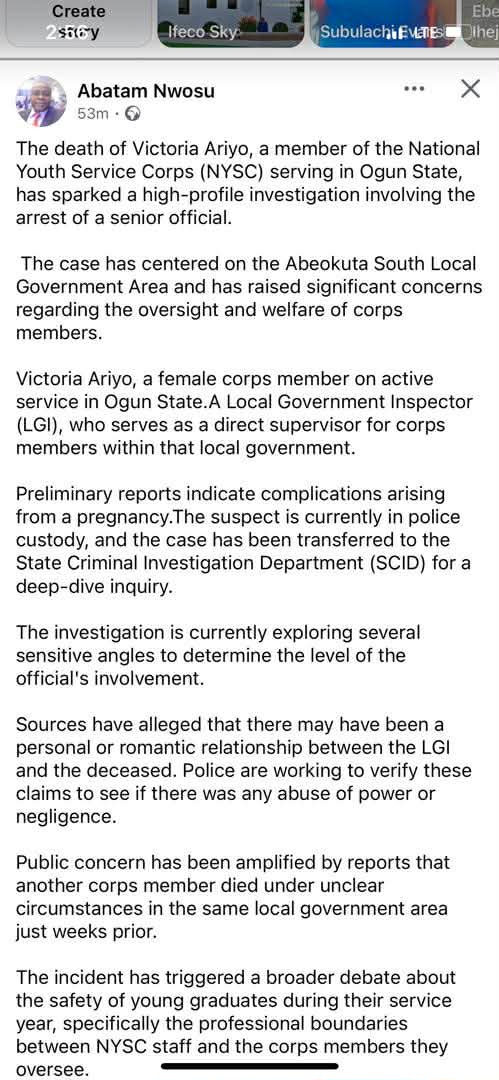 This is to formally address and debunk the false information currently circulating on social media regarding Victoria Ariyo. The rumor claims she passed away while serving as a National Youth Service Corps (NYSC) member in Ogun State.